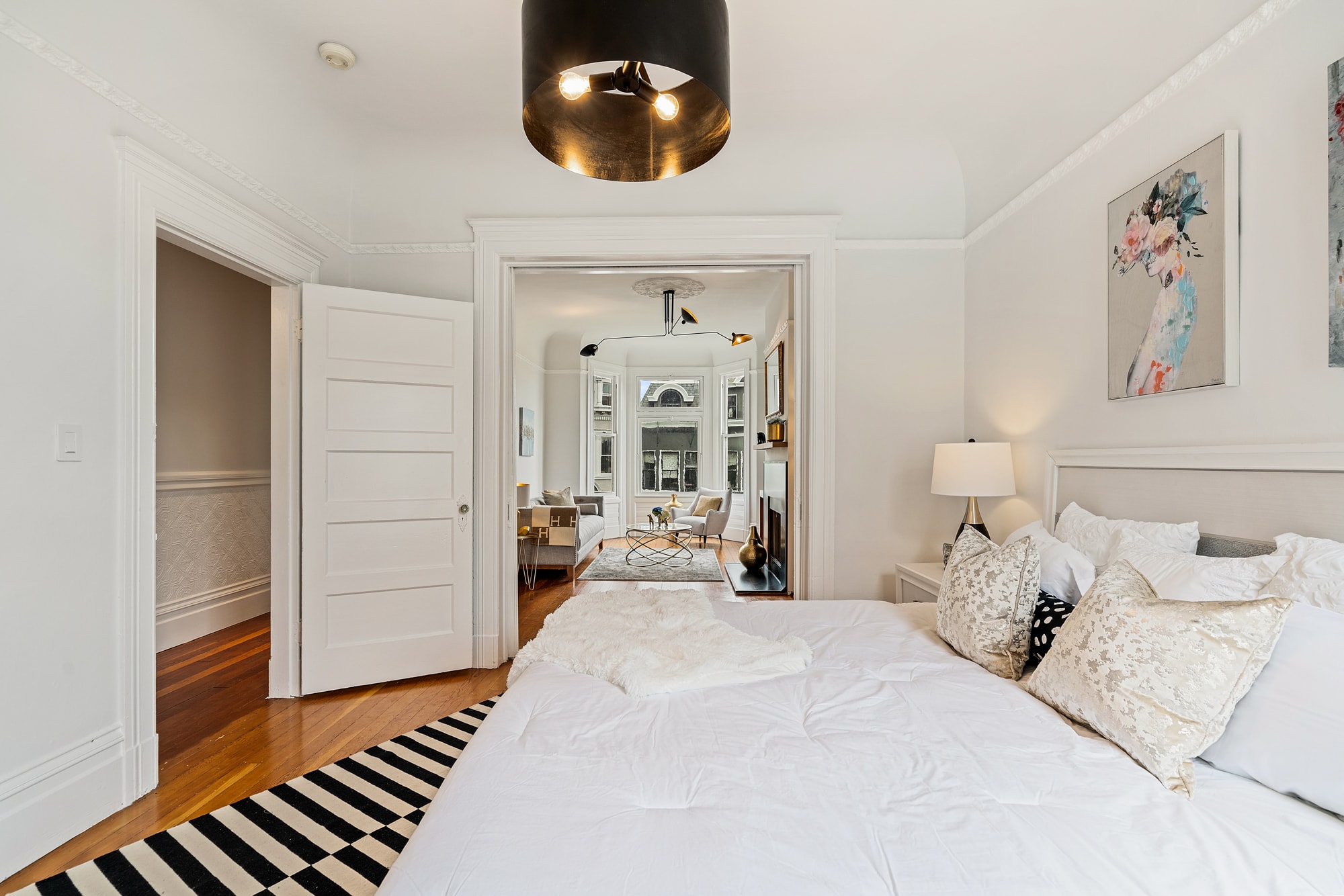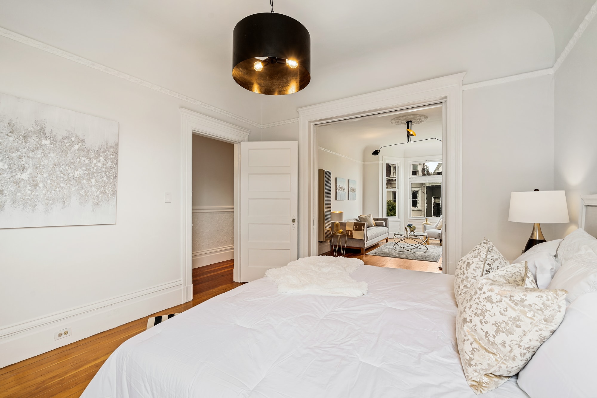 1329 is an updated, top-floor, 4-bed Victorian home that’s large, comfortable and charming with a rich history, modern conveniences and iconic location a block away from Alamo Square with its expansive green space and Painted Ladies in the heart of the city near to the thriving Divisadero Corridor, Duboce Triangle, the Fillmore and Hayes Valley. Stylish statement pieces mix modern and traditional throughout this nearly 1,900-sqft space. The floor plan organizes public, private, and flexible spaces to suit your ever-changing needs. The just-remodeled kitchen, with its subtly luxurious finishes and large pantry, flows outside to a deck and backyard via sunroom/breakfast nook. The four bedrooms allow for multiple options for living/working or learning from home.