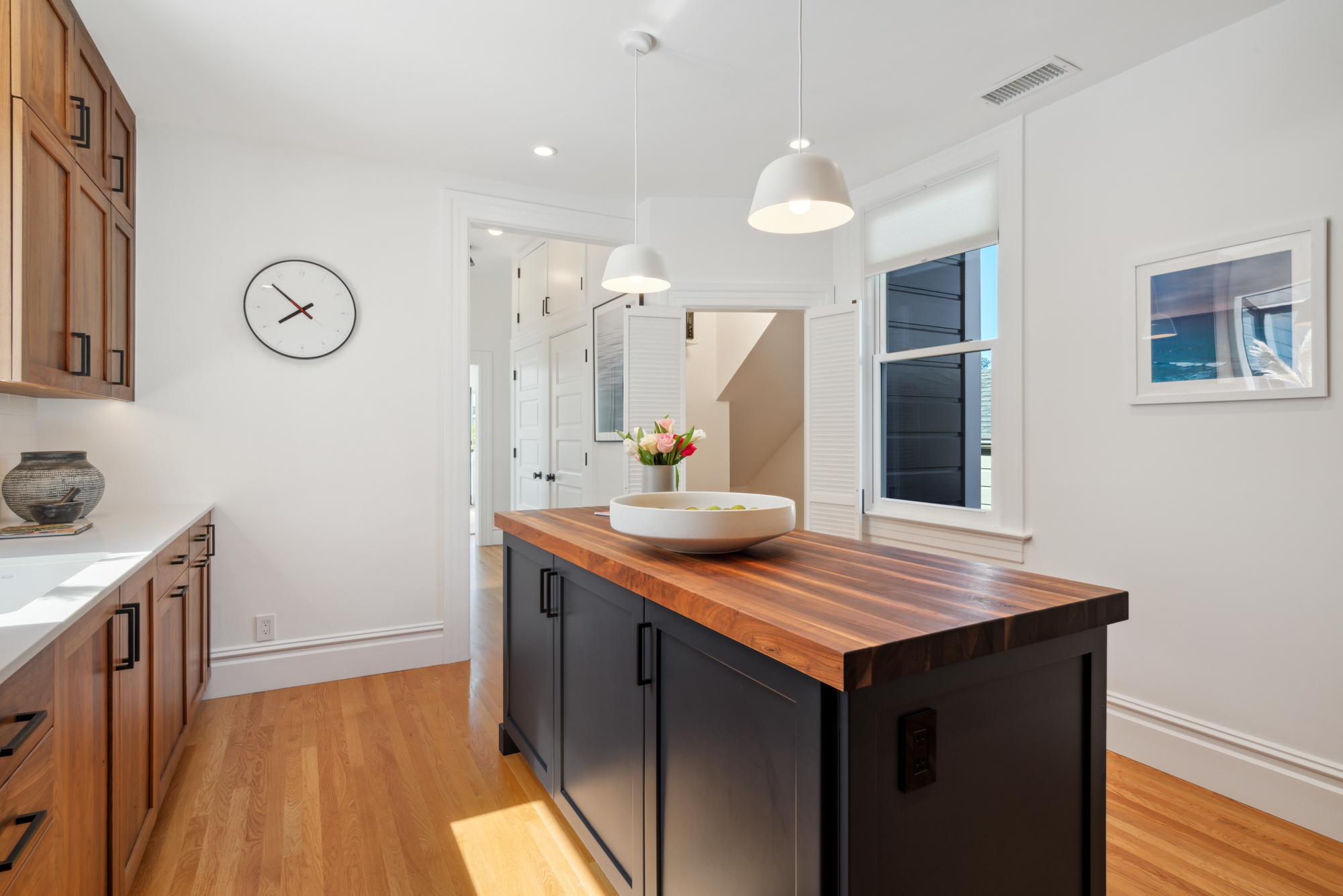 1882-84 Church presents a unique opportunity for comfortable and flexible living in a community-connected setting. Nestled in the vibrant and friendly Glen-Noe enclave of San Francisco, 1882-84 Church is a charming Victorian detached residence with approximately 3,000 square feet of living space configured as two discrete living spaces. The top two levels have nearly 2,000 sqft, 3 bedrooms + 2 baths. Recently renovated, modern comforts such as air conditioning combine with classic features like coved ceilings + wood floors. The highlight is its bespoke kitchen, clad with luxurious walnut cabinetry, a walnut butcher-block island—a beloved gathering spot—a 36” Wolf range and a striking 42” Jenn-Air fridge, plus a spacious pantry.
