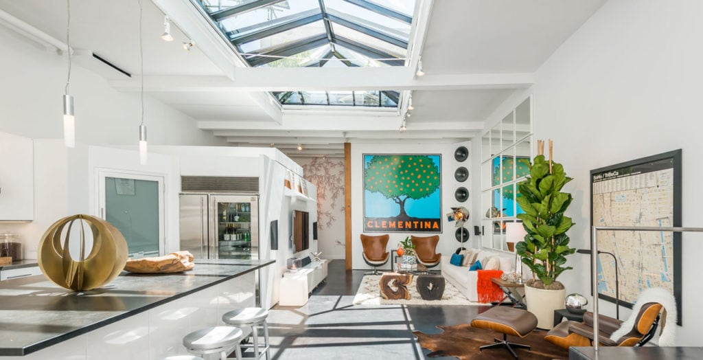Completely rebuilt, re-engineered, 735 is a smart and green property that has a vast bright — yet intimate — living area that brings the outdoors in under its massive 35-foot long skylight, equipped with power shades with motorized operation (4 panes that open for ventilation); 550-gallon grey water reclamation system, solar power and radiant heat. There is a commercial-grade, premium kitchen with large top-line appliances, exclusive master suite with bathtub, dual rain shower-head showers + steam shower capabilities and ridiculously big master closet (that also doubles as a massive speaker box). 735’s scale is enhanced by 13-ft & 10-ft ceilings with reclaimed wood details throughout. Smart home features use mobile apps, Apple TV, Amazon’s Echo, + audio/networking tech for one-touch control whether you’re home or not.