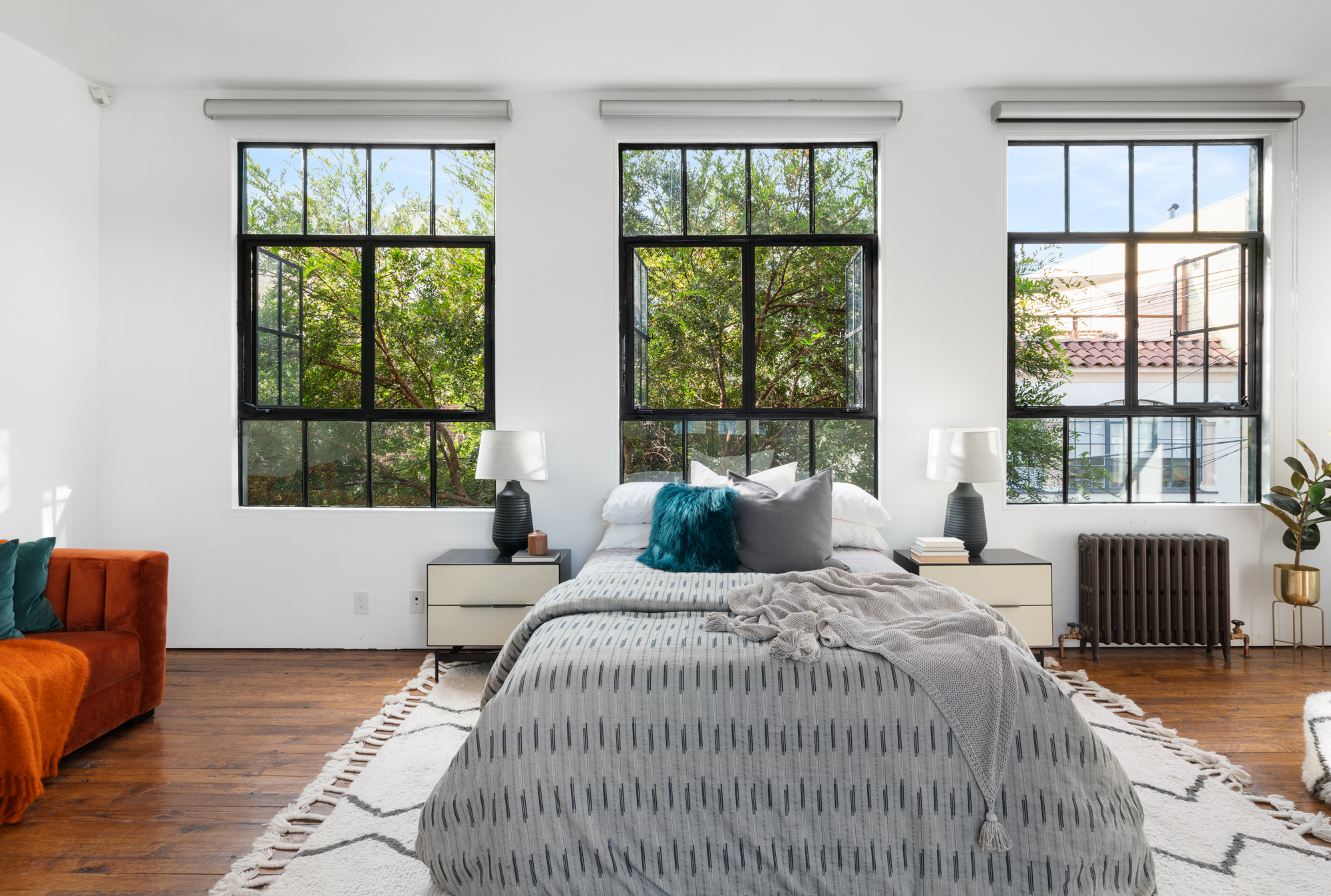 • 2-bed, 2-bath, 2-level warehouse conversion spanning 1,970+ sqft between 9th and 8th Streets