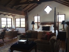The downstairs level is where the multi generational trend was most at hand. There are three distinct bedrooms and two distinct quarters. One quarter has two bedrooms – each with its own bath– a minibar and kitchenette, a dining area, and access to the courtyard as well as another exterior door. The other quarters is simpler with a bedroom and bathroom and small sitting area.
