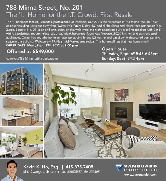 0 Comments on "Come See Me TONIGHT at My New Listing at 788 Minna Street., No. 201, 5:54 – 6:45 p.m., Sept 6, 2011"