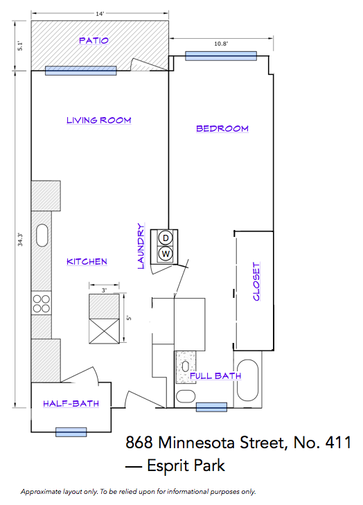 Number 411 is a chic, serene and spacious condominium with 1 bed/1.5 baths, modern amenities, and conveniences in the ever-popular Dogpatch neighborhood located on the 4th floor with garage parking and storage unit. Built in 2008/2009, this larger-than-usual floor plan is located at the end of a corridor and has: a top-line gas & granite kitchen with external venting, wood floors, a walk-out patio, radiant heat, tankless water heater (for endless showers), large wool-carpeted bedroom with generous closet storage and in-unit laundry with included high-speed internet. Number 411 is part of a dog-friendly building with a community-based HOA. Amenities include a 2-level gym, theater, common meeting room, secure bike storage room and keyless entry. Number 411 is flanked by a gentle bamboo courtyard on one side and quiet babbling-brook reflecting pool courtyard on the other that creates a modern oasis.