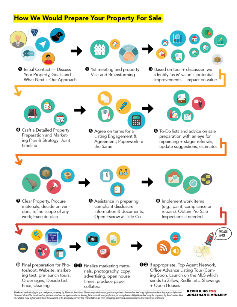 • After this, we will begin working with you to get all necessary documents and disclosure materials ready which are not only required by state law but also serve as yet another channel in which we can communicate with any potential buyer — it's an opportunity most agents overlook but is one we have been recognized as excelling at.