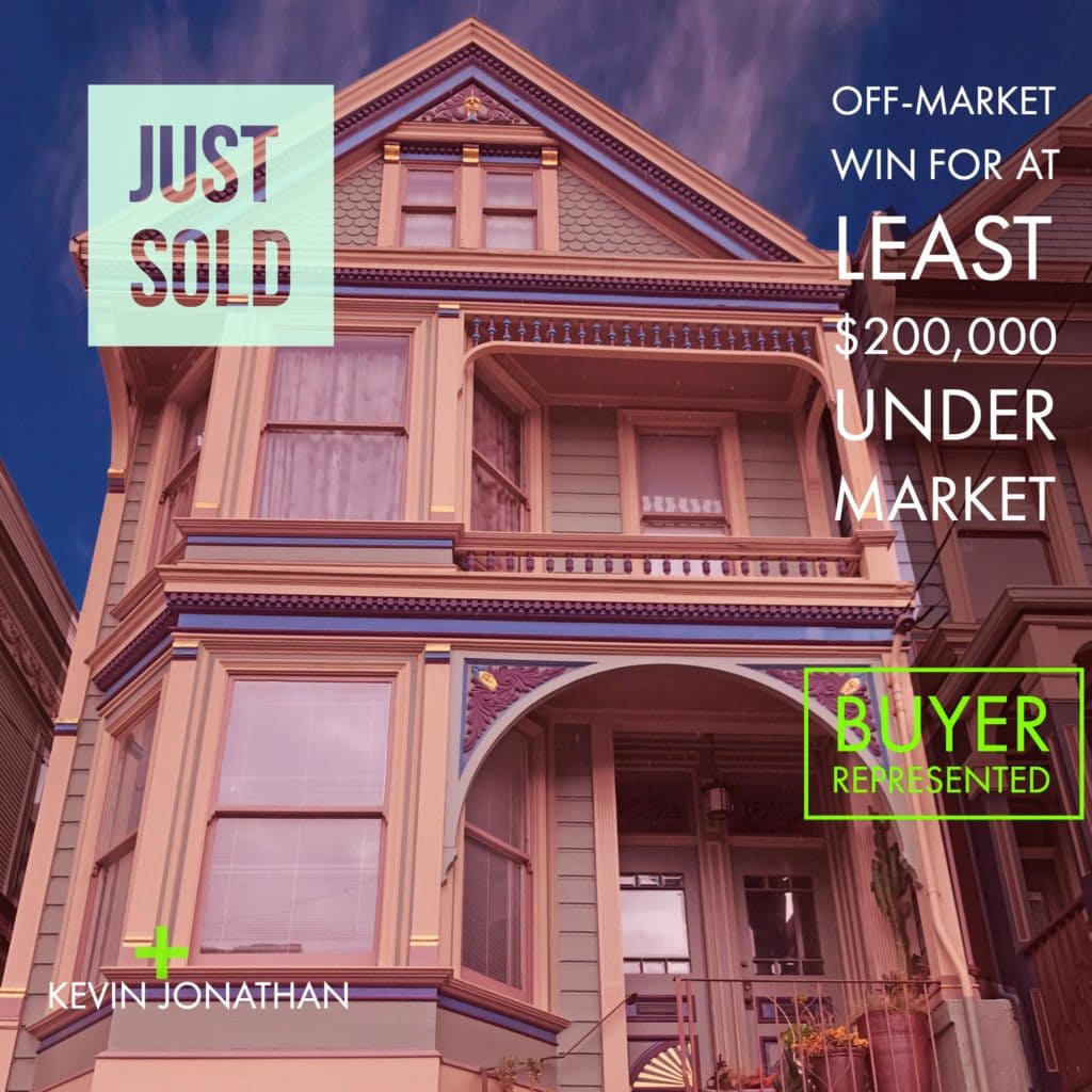 Kevin and Jonathan also guided us through the buying process. They are very keyed into the local San Francisco market and know about many properties that are unlisted. Again, it is their personal relationships with others (peer real estate agents, developers, etc) that really give them the inside scoop on upcoming listings or pocket listings. In a competitive real estate market, these intangibles that Kevin possesses is crucial to a successful buying process.