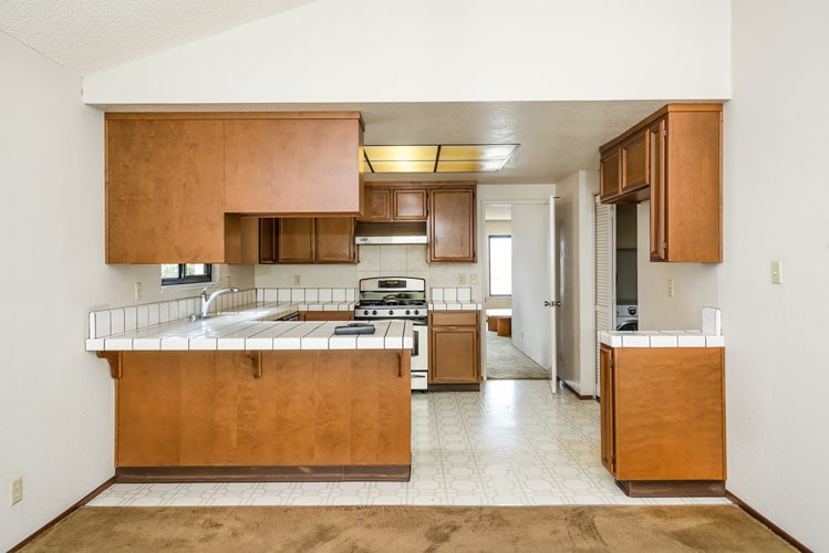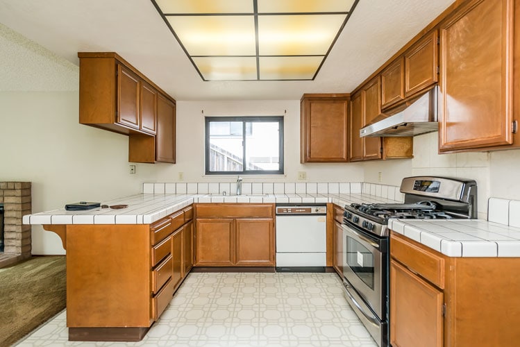 Appliances included (no warranties made) 4-burner gas stove and oven, dishwasher, kitchen exhaust hood, washer, dryer (electric)