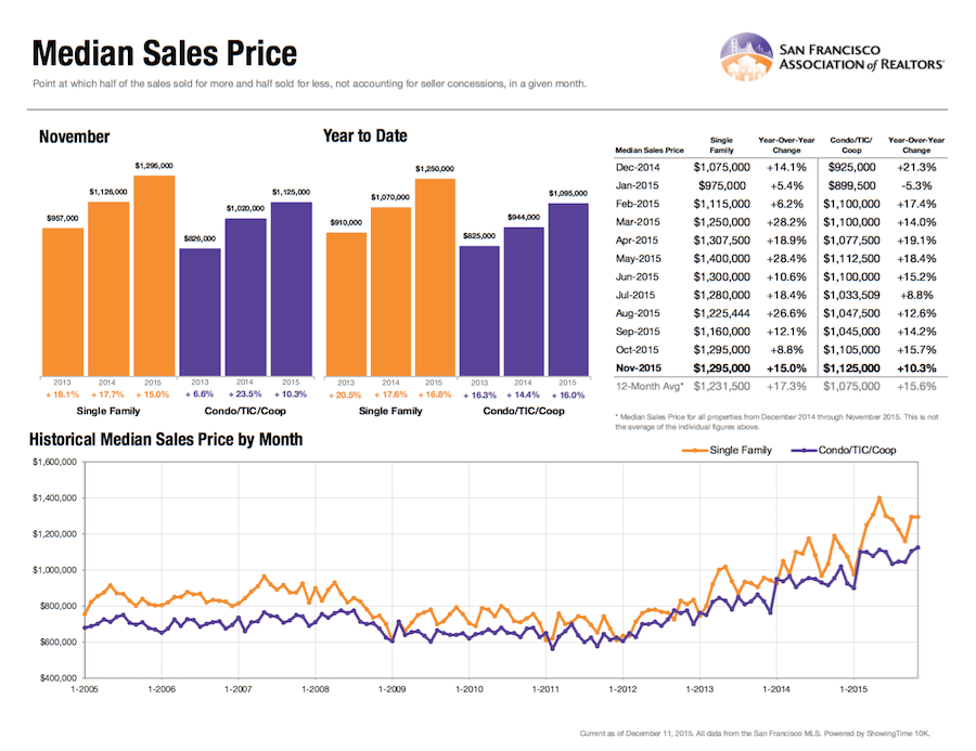 The Realtors issued their market breakdown of what happened in San Francisco’s residential real estate market comparing November 2014 and November 2015.